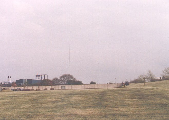 This is the Magic 1548 transmitter site at the Bromborough Power Station site, which replaced the old 4 Kw. transmitter at Rainford Near Warrington. These pictures were taken in 1998. The nearby Power Station buildings have since been demolished.