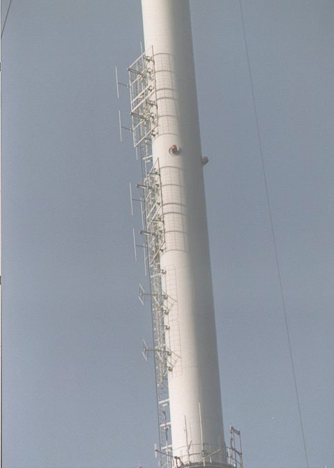 Another view showing the warning lights which are used to warn of falling ice during winter
