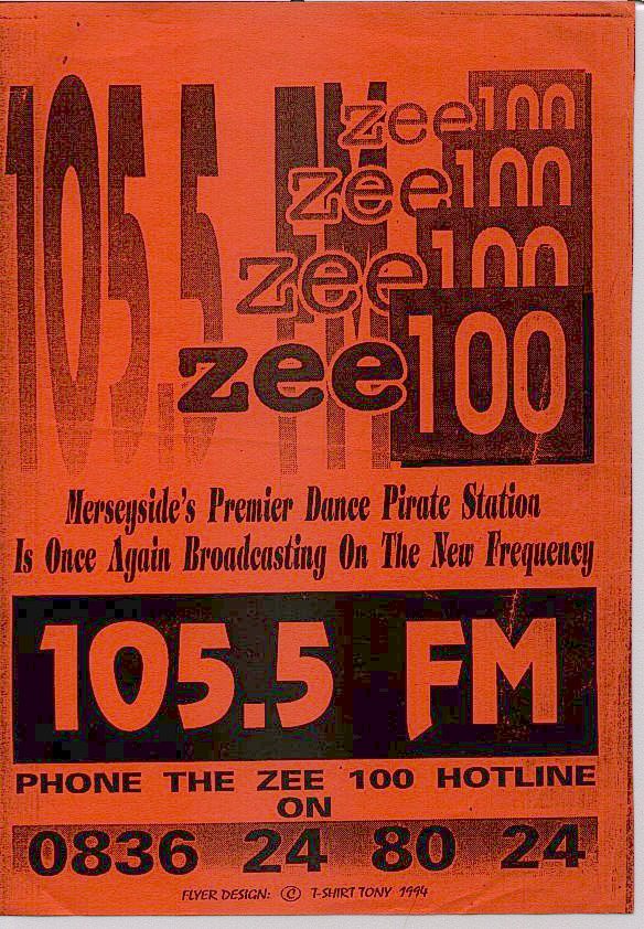 This is one of many different coloured Zee 100 flyersdistributed on the Wirral when The Zee was on the air regularly in 1993. There are still traces of their posters in Birkenhead town centre today. Official Zee 100 History : http://www.zee100.co.uk